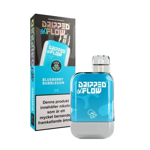 Dripped GoFlow Blueberry Bubblgum är en engångsvape med smak av blåbär. Produkten innehåller nikotinsaltbaserad e-vätska med en koncentration på 20mg/ml och levererar upp till 800 puffar, beroende på användning.