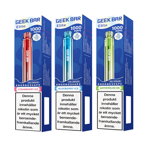 - GEEK BAR Elite 1000 Strawberry Ice (20mg): Smak av jordgubb.