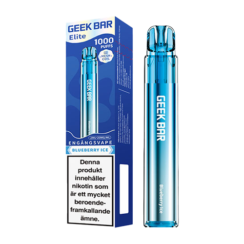 - GEEK BAR Elite 1000 Blueberry Ice (20mg): Smak av blåbär.
