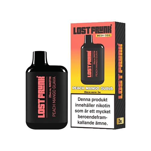 Lost Frunk Peach Mango Guava är ett Engångsvape från Lost Frunk Mesh med frukt smak och 20 mg/ml nikotinhalt. Lost Frunk Peach Mango Guava har ett Mesh coil och ger upp till 600 puffar.