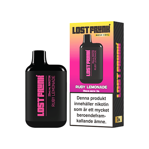 Lost Frunk Ruby Lemonade är ett Engångsvape från Lost Frunk Mesh med citrus och frukt smak och 20 mg/ml nikotinhalt. Lost Frunk Ruby Lemonade har ett Mesh coil och ger upp till 600 puffar.
