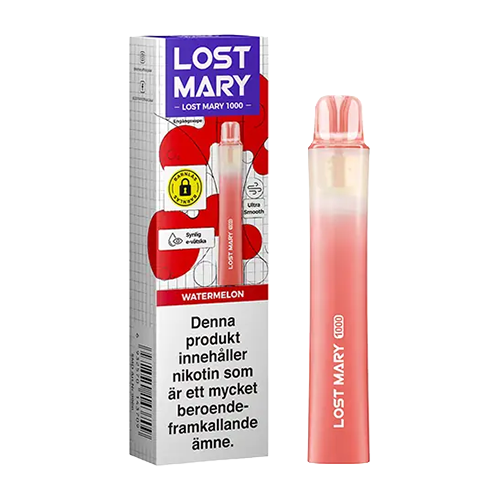Lost Mary 1000 Watermelon är en engångsvape med smak av vattenmelon. Produkten tillhör kategorin engångsvape och är avsedd engångsbruk.
