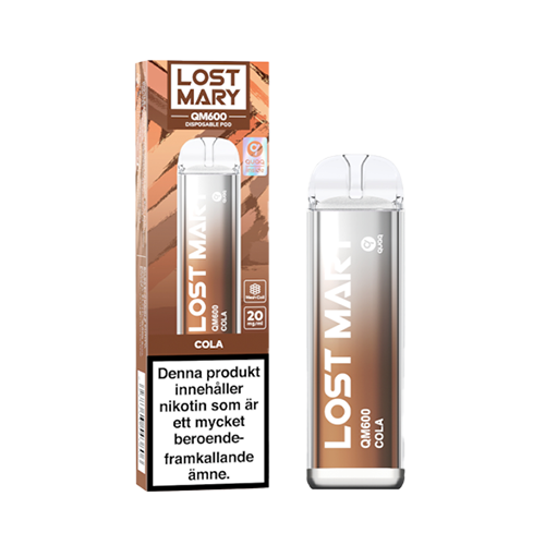 Lost Mary QM600 Cola är en engångsvape med smak av Cola. Produkten innehåller nikotin (20 mg/ml) i nikotinform och levererar upp till 600 puffar, beroende på användning.