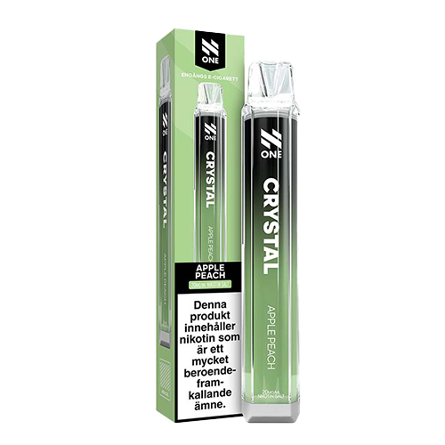 N One Crystal Mesh Apple Peach är en engångsvape avsedd för användning utan påfyllning eller laddning. Produkten innehåller en nikotinsaltbaserad e-vätska med smak av äpple och persika.
