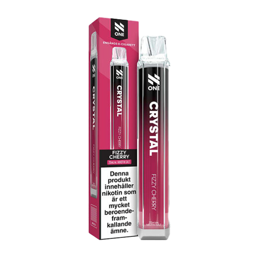 N One Crystal Fizzy Cherry är en engångsvape avsedd för användning utan påfyllning eller laddning. Produkten innehåller en nikotinsaltbaserad e-vätska med en smak som påminner om körsbär.