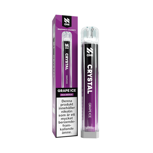 N One Crystal Grape Ice är en engångsvape avsedd för användning utan påfyllning eller laddning. Produkten innehåller en nikotinsaltbaserad e-vätska med en smak som påminner om vindruvor och har en kylande ton.