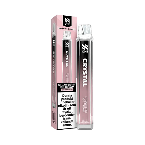 N One Crystal Mesh Strawberry Ice Cream är en engångsvape avsedd för användning utan påfyllning eller laddning. Produkten innehåller en nikotinsaltbaserad e-vätska med smak av jordgubb och vanilj.
