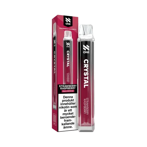 N One Crystal Mesh Strawberry Raspberry är en engångsvape avsedd för användning utan påfyllning eller laddning. Produkten innehåller en nikotinsaltbaserad e-vätska med smak av jordgubb och hallon.