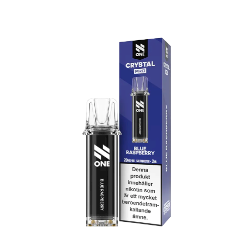 N One Crystal Pro Pod Blue Raspberry är en förfylld pod med smak av blå hallon som används tillsammans med ett kompatibelt N One Crystal Pro-batteri. Podden är en färdig kapsel som innehåller 2 ml e-vätska och coil i samma format, vilket gör den enkel att använda utan påfyllning. Det finns även pods i flera olika smaker.