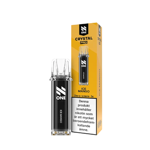 N One Crystal Pro Pod Ice Mango är en förfylld pod med en kylande ton och smak av mango som används tillsammans med ett kompatibelt N One Crystal Pro-batteri. Podden är en färdig kapsel som innehåller 2 ml e-vätska och coil i samma format, vilket gör den enkel att använda utan påfyllning. Det finns även pods i flera olika smaker.