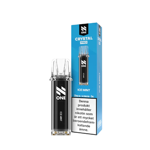 N One Crystal Pro Pod Ice Mint är en förfylld pod med en kylande ton och smak av mint som används tillsammans med ett kompatibelt N One Crystal Pro-batteri. Podden är en färdig kapsel som innehåller 2 ml e-vätska och coil i samma format, vilket gör den enkel att använda utan påfyllning. Det finns även pods i flera olika smaker.