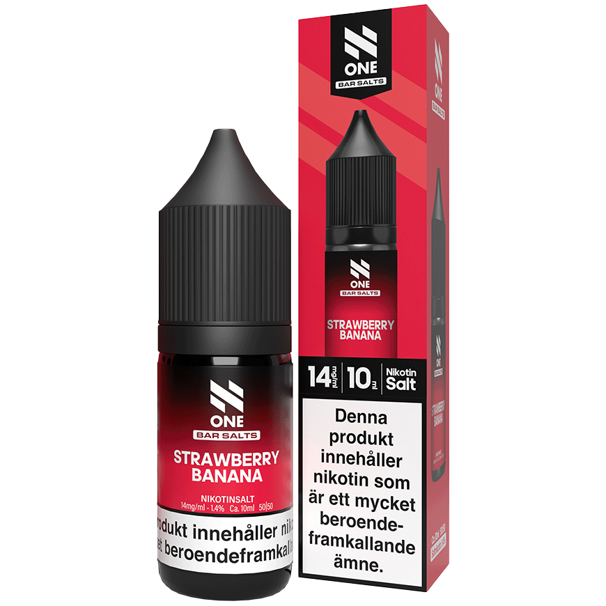 N One Salts Strawberry Banana är en e-vätska baserad på nikotinsaft, avsedd för användning i podsystem och e-cigaretter som stödjer nikotinsaft. Produkten levereras i en 10 ml flaska och har smak av jordgubb och banan. Vätskan har en nikotinstyrka på 14 mg.