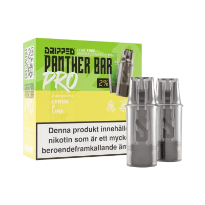 Panther Bar Pro Pod Lemon & Lime är en förfylld pod från märket Dripped och är avsedd för användning med Panther Bar Pro batteri. Podden innehåller färdig e-vätska och ingen påfyllning.