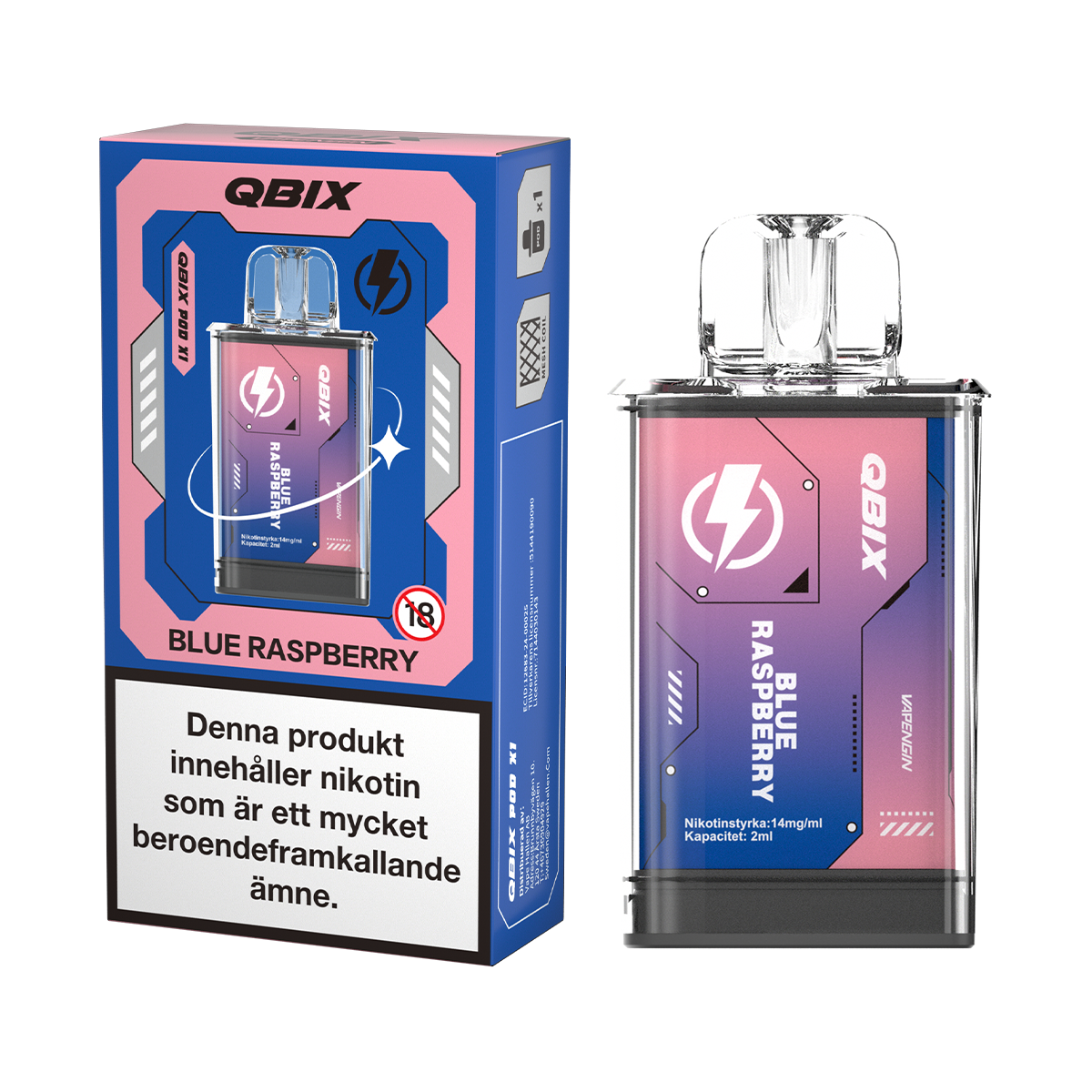 QBIX Blue Raspberry är en förfylld smakkapsel avsedd för användning med QBIX podsystem. Produkten innehåller smakämnen som påminner om blå hallon. Nikotinhalten är 14 mg/ml.