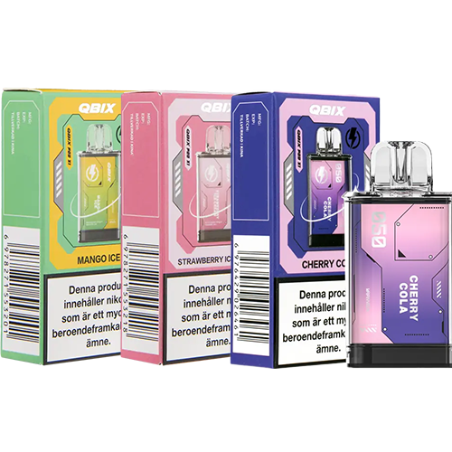 - QBIX Pod Cherry Cola (14 mg): Smak av körsbär och cola.