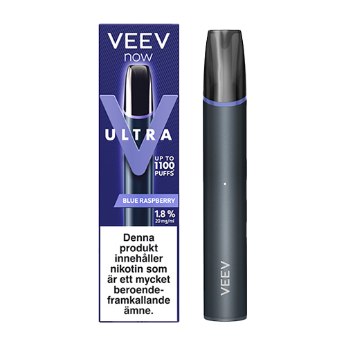 VEEV NOW ULTRA Blue Raspberry 20 mg är en engångsvape från Swedish Match under varumärket VEEV. Produkten innehåller 2 ml förfylld e-vätska med en nikotinhalt på 20 mg/ml och är utrustad med ett integrerat batteri på 680 mAh. Varje enhet erbjuder upp till cirka 1 100 puffar, beroende på användning.