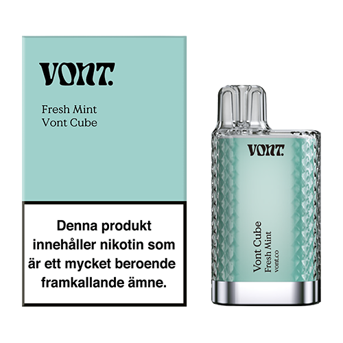 Vont Cube fresh mint är en engångsvape med mesh-coil och en kristall liknande design samt smak av mint. Vont Cube finns även i flera olika smaker och styrkor.