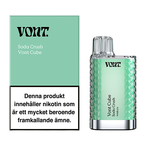 Vont Cube Soda Crush är en engångsvape med mesh-coil och en kristall liknande design samt smak som påminner om läsk. Vont Cube finns även i flera olika smaker och styrkor.