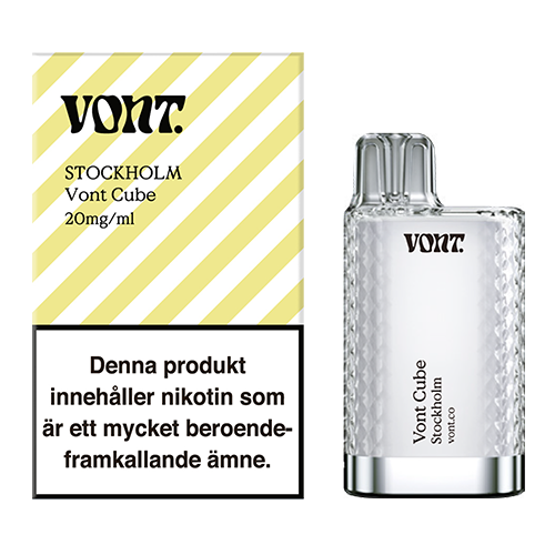 Vont Cube Stockholm är en engångsvape med mesh-coil och en kristall liknande design samt smak av litchi och soda. Vont Cube finns även i flera olika smaker och styrkor.